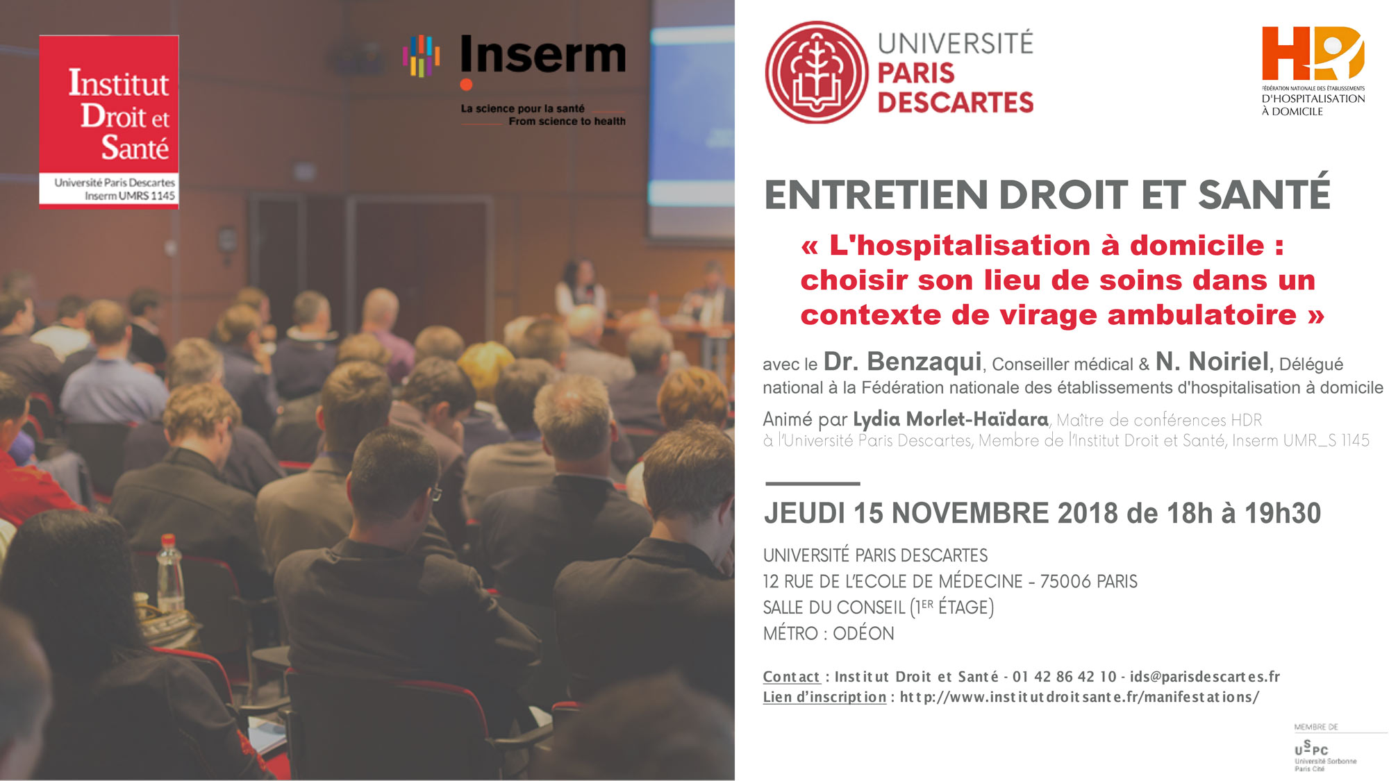 L’Institut Droit et Santé (IDS) a le plaisir de vous inviter à débattre dans le cadre des Entretiens Droit et Santé avec :