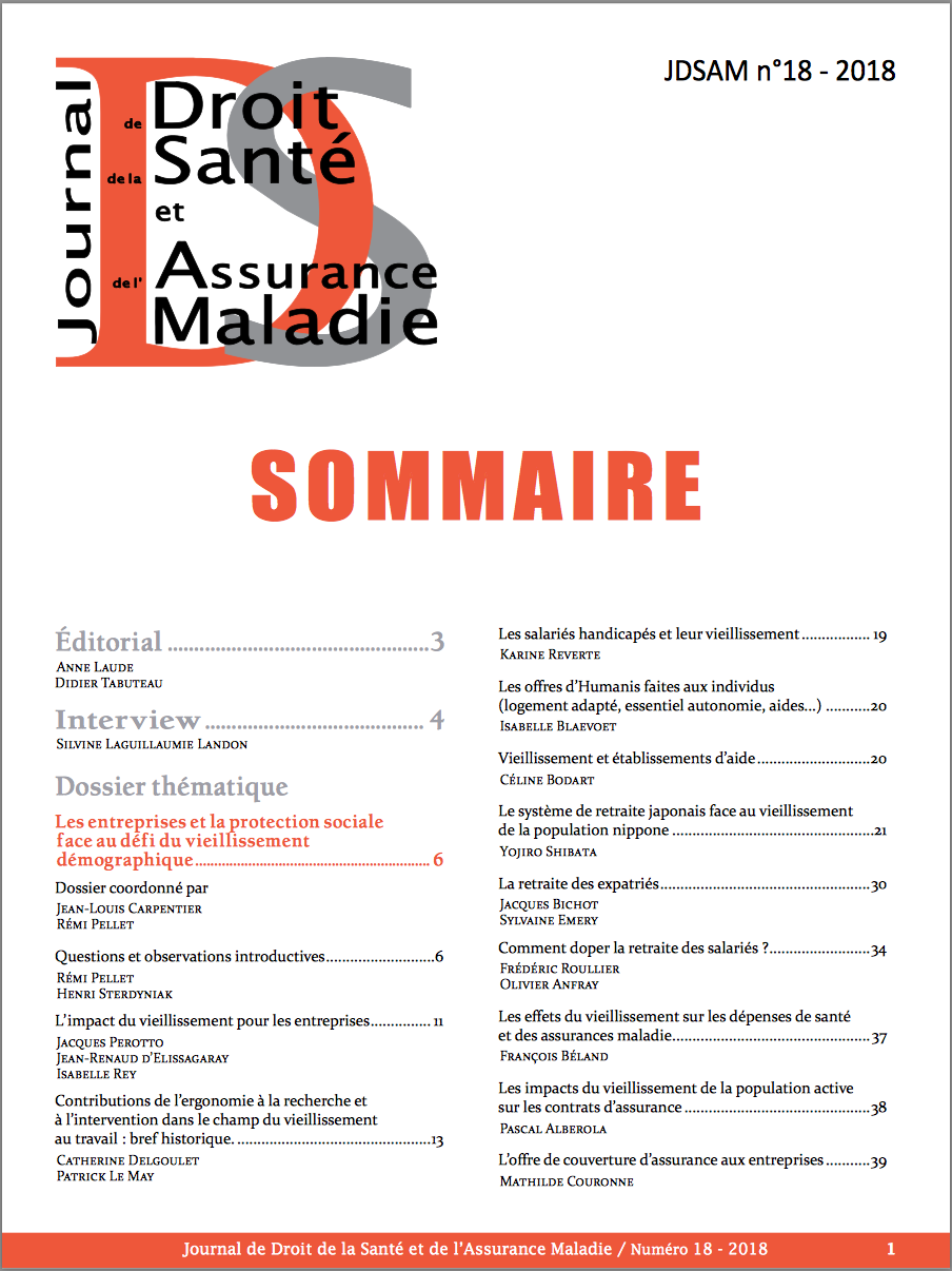 Que tous ceux qui ont contribué au succès de ce colloque et qui ont permis la réalisation de ce dossier en soient très vivement remerciés. L’Institut Droit et Santé a ainsi le privilège de présenter, à travers cette nouvelle livraison du JDSAM, une réflexion renouvelée sur des questions cruciales pour l’évolution des systèmes de protection sociale.
