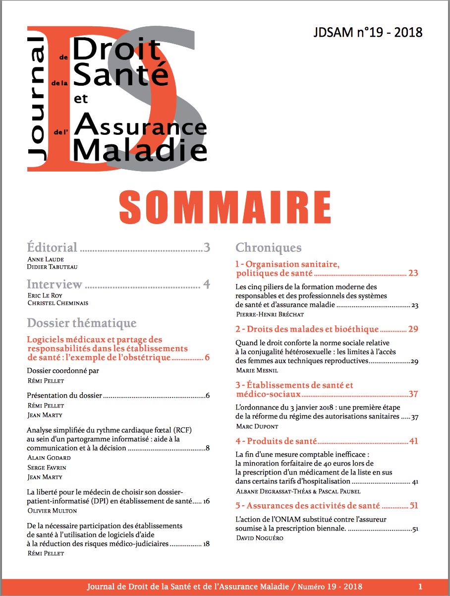 A l’heure du développement de l’intelligence artificielle et de la multiplicité d’outils permettant de faciliter l’exercice de l’art médical, le dossier du JDSAM coordonné par le professeur Rémi Pellet analyse les enjeux juridiques des logiciels médicaux et la question du partage des responsabilités dans les établissements de santé, à l’aune de l’expérience de l’obstétrique.