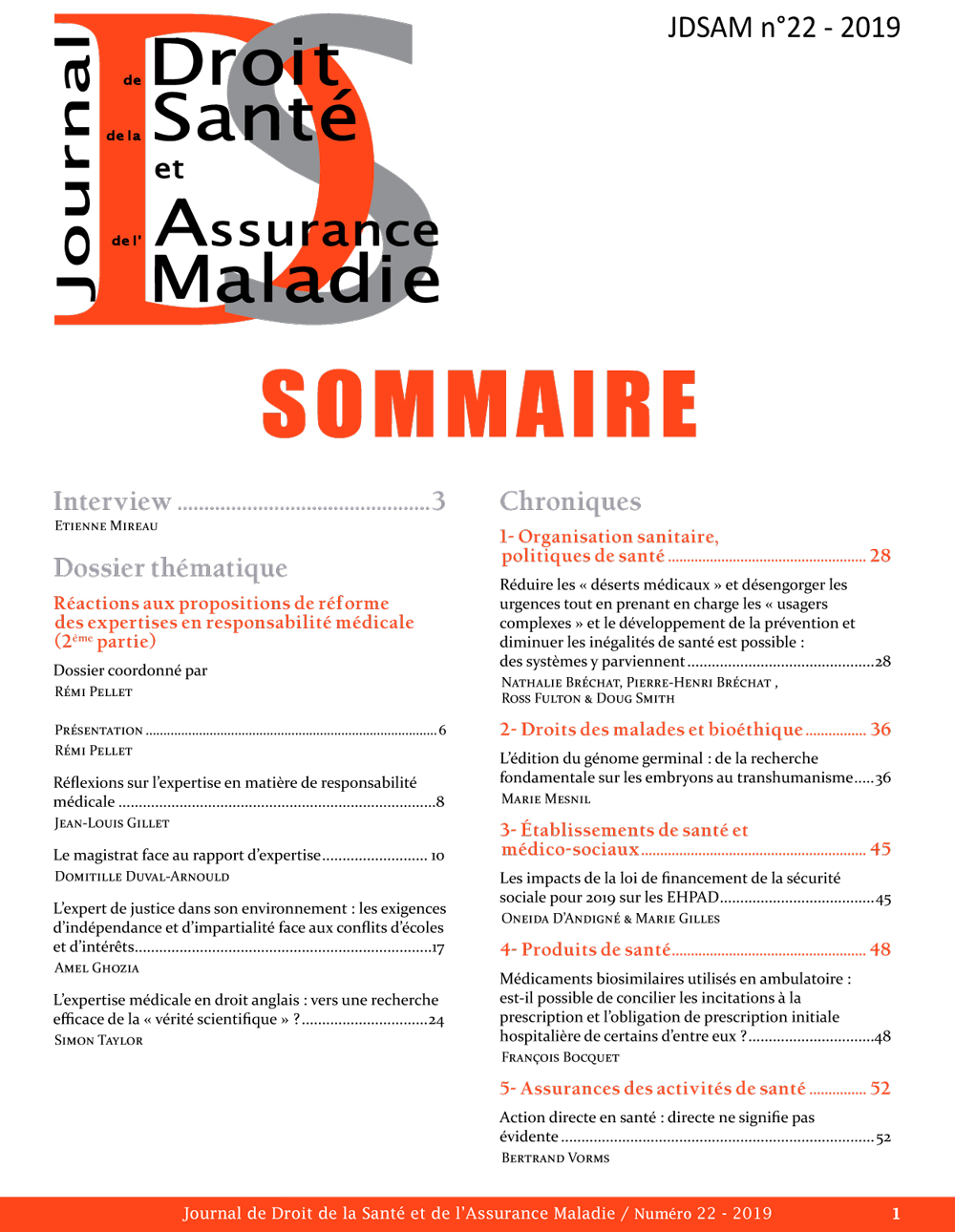 Réactions aux propositions de réforme des expertises en responsabilité médicale (2ème partie)