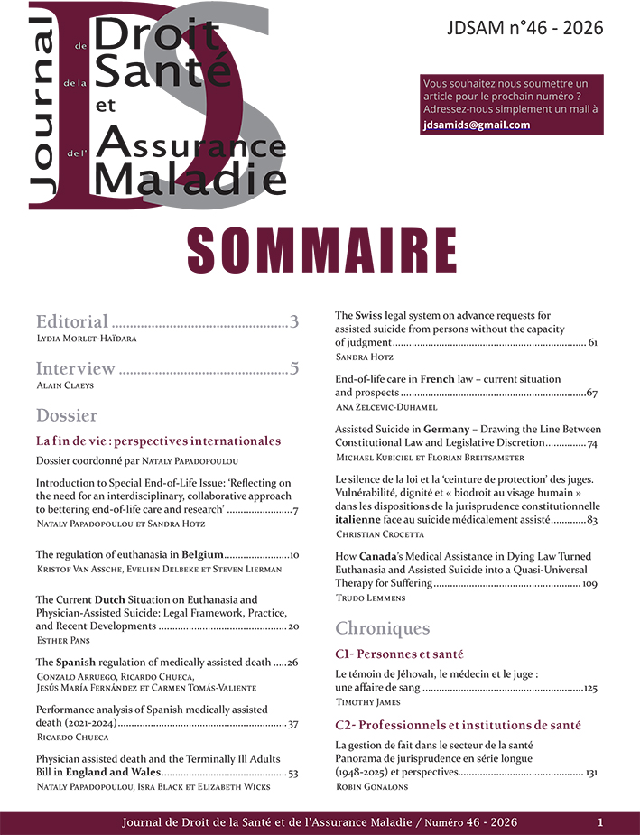 Autant de lectures riches et variées qui démontrent, s’il en était encore besoin, la richesse et la diversité des problématiques du Droit de la santé, dans une approche très large et interdisciplinaire chère à l’Institut Droit et Santé. Nous espérons que les analyses réunies dans ce numéro contribueront une nouvelle fois à éclairer les lecteurs sur les évolutions contemporaines du droit de la santé.